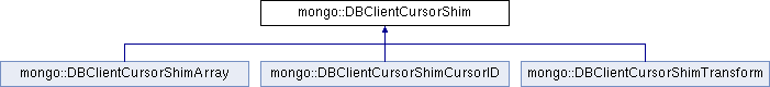 Inheritance diagram for mongo::DBClientCursorShim:DBClientCursorShim provides an abstract interface for providing polymorphic cursors.