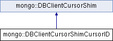 Inheritance diagram for mongo::DBClientCursorShimCursorID:DBClientCursorShimCursorID implements the shim interface over a cursor reply document, rather than the traditional OP_REPLY.