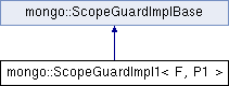 Inheritance diagram for mongo::ScopeGuardImpl1< F, P1 >: