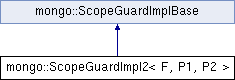 Inheritance diagram for mongo::ScopeGuardImpl2< F, P1, P2 >: