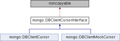 Inheritance diagram for mongo::DBClientCursorInterface:for mock purposes only – do not create variants of DBClientCursor, nor hang code here