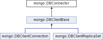 Inheritance diagram for mongo::DBConnector:Public Member Functions | |