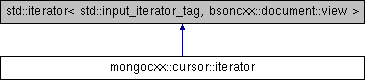 Inheritance diagram for mongocxx::cursor::iterator:Public Member Functions | |