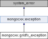 Inheritance diagram for mongocxx::gridfs_exception:Class representing an error encountered when attempting to perform the requested GridFS operation.
